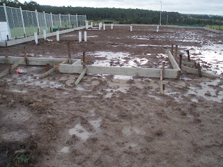 Today the formwork for slab had begun even though it poured rain early in the morning, they still managed to get most of the outer formwork done. Waffle pods and temporary fence also arrived.